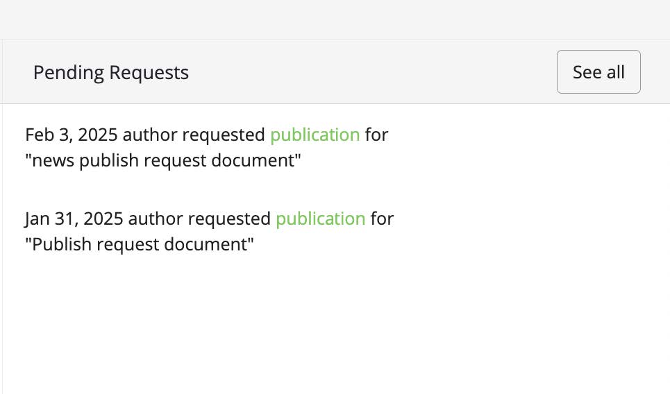 A "See all" button has been added to redirect users to the Advanced Search page. This allows users to view all documents with pending requests in one place.