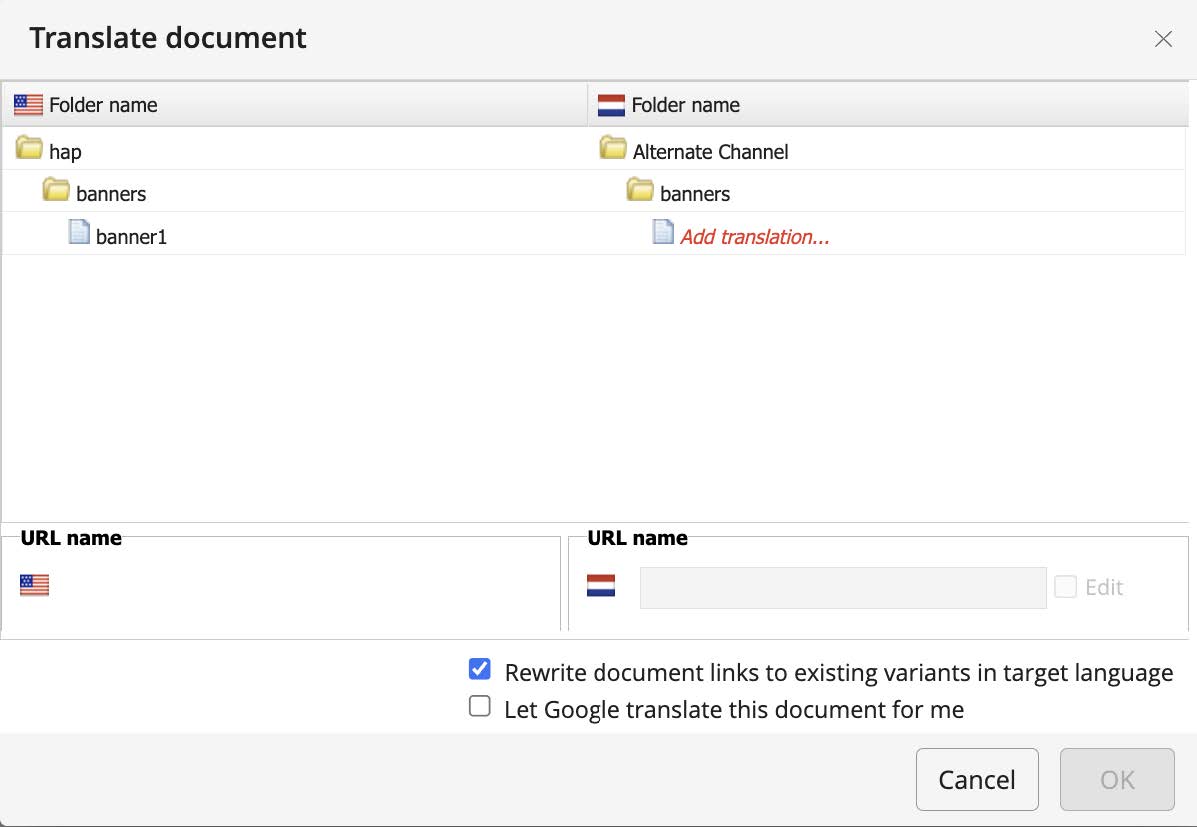 While copying a document to translate, links will be automatically switched to the target locale if a copy of the link is available in the translated language. This saves time for editors and authors by removing the need for manually changing the links and ensures that translated documents have links appropriate for their locale, preventing broken or incorrect links. This feature ensures a seamless translation process, maintaining link integrity across different language versions of content.