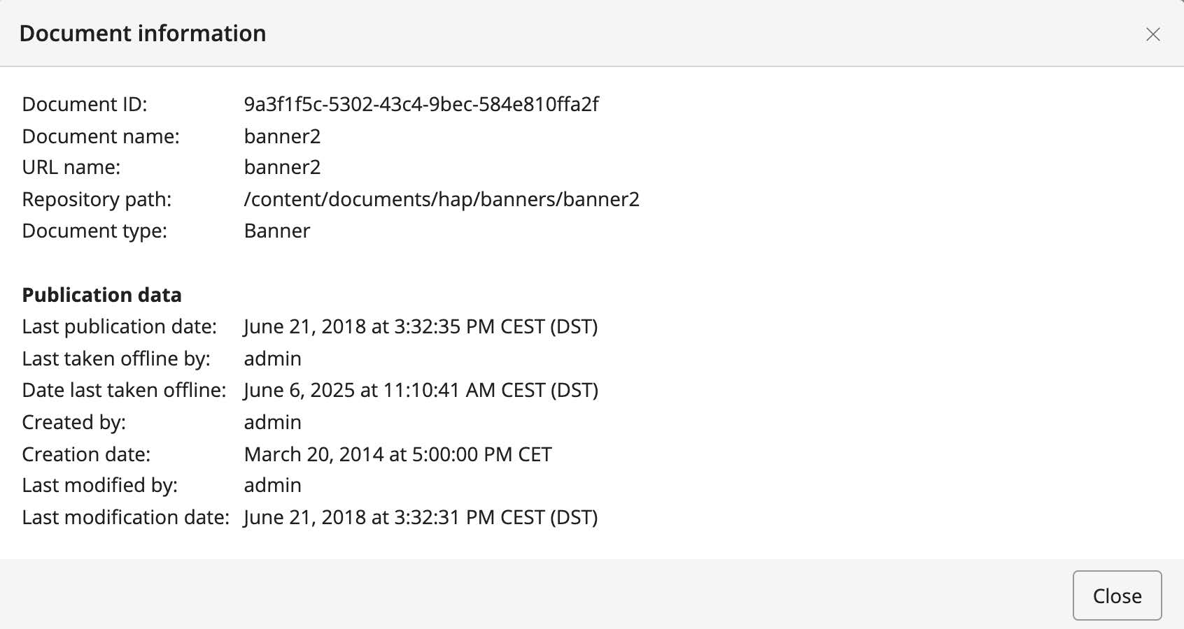 We introduced the `depublicationDate` and `depublishedBy` properties to the published document variant. These properties are now shown in the document information dialog.