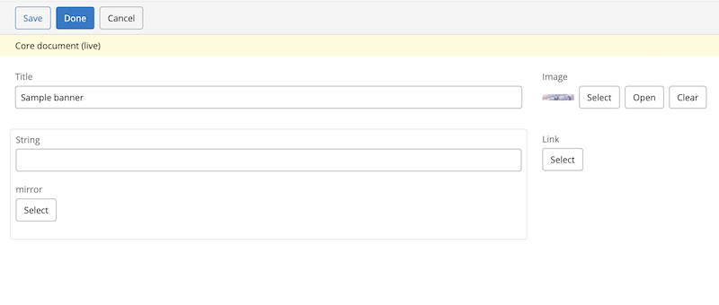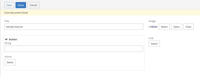 Bloomreach Experience Manager supports document fields of type compound. By default, Bloomreach Experience Manager displays any compound field with its field name as the title and collapsible functionality. It might be desired to configure the display of a compound field inside a document type to hide the title and disable the collapsible functionality to save vertical margin.