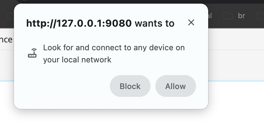 To resolve this, you must enable local network access in the HST configuration and grant permission in the browser.